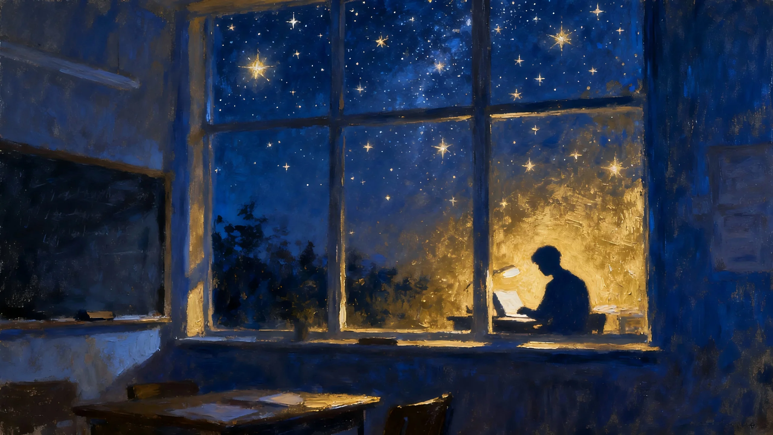 初执粉笔的指尖还凝着热忱,却被漫来的杂事覆了薄霜,教案上的字迹晕着月光,而休息的光阴早已碎成星芒