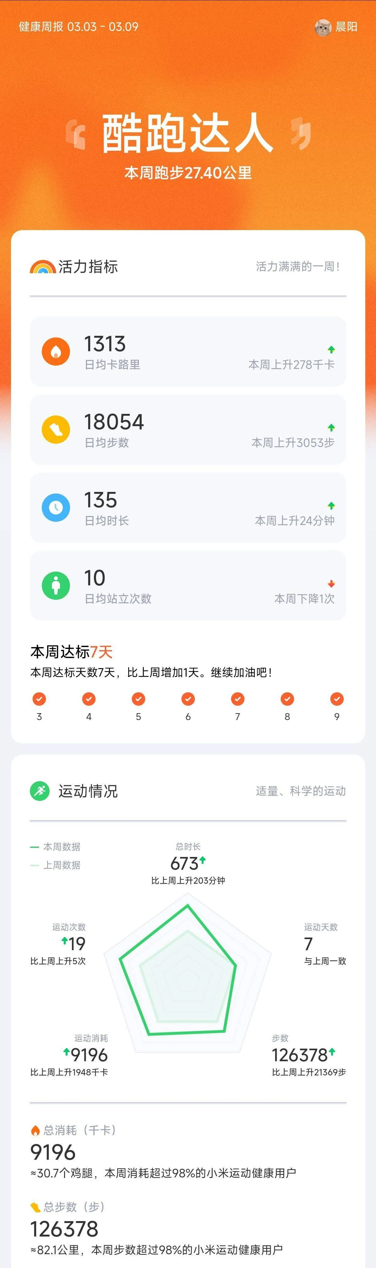 运动数据总览,整体来说比上周有所进步 (~ ̄▽ ̄)~