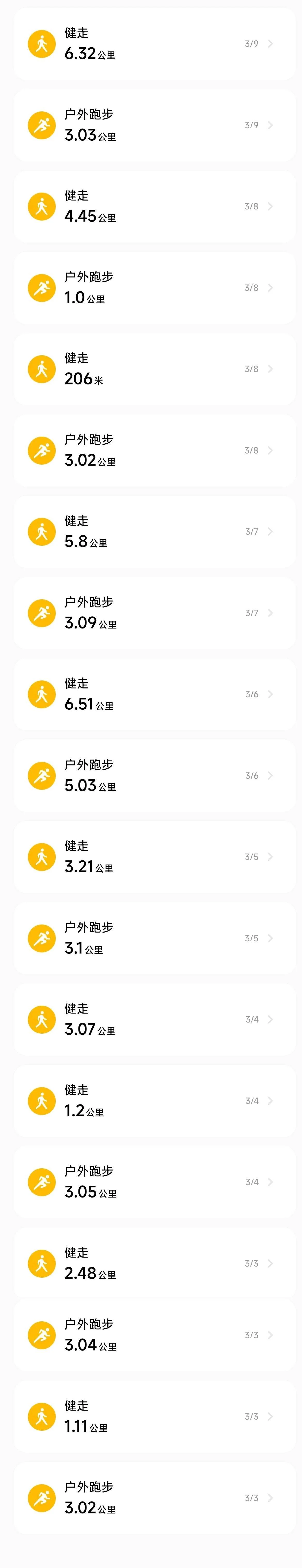 这周最大的突破是,我发现自己跑步时的呼吸更加平稳了,跑完三公里也不再像之前那样气喘吁吁。 健走方面,我也尝试着加快了速度,并加入了摆臂的动作,感觉全身都得到了更好的锻炼。