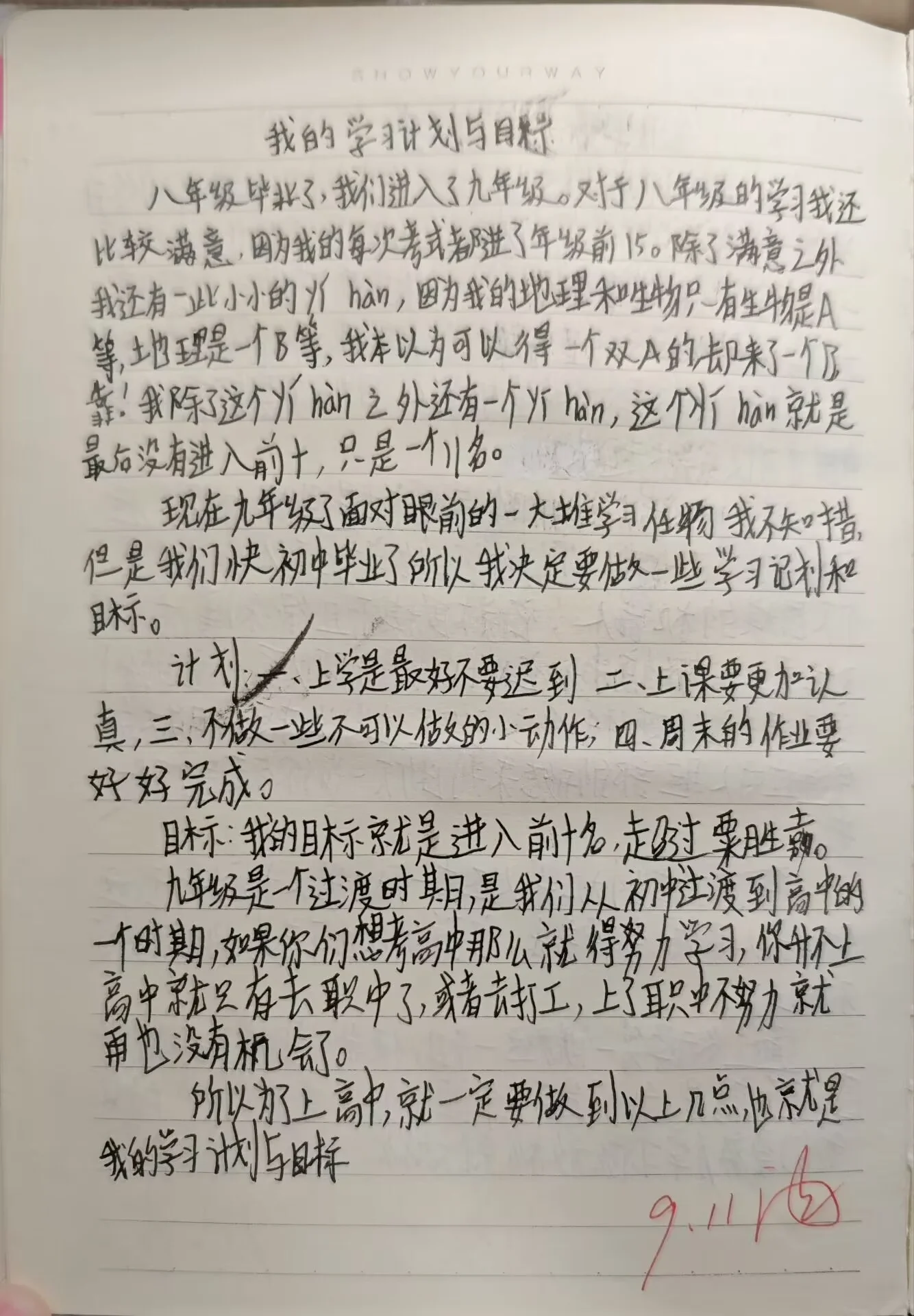此篇作文来自博主初中时候;批改日期:9月11日,具体年代无从得知。